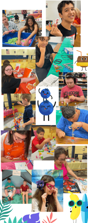 The afternoons brought us to free choice "Activity Zones". We had 9 different activity zones and 1 "Maker Station." Activity zones included coloring, sensory (stretch sand, clay, playdoh, etc.), 3-D building (marble mazes, brain flakes, etc.) painting (a different paint project each day), puzzles (regular, wooden, & Tetris style), games (we had several but the favorite was the Octopus Blast - think air hockey meets marbles), chill zone (a place to relax, look at books, and use fidgets), action zone (gym - bikes, basketball, balloon tennis, obstacle course, etc.) STEM (solar robot building), and a HUGE Lego zone, where some amazing builds took place! Each day at the maker station was a new take and make. Participants that chose to do the Maker Station made a variety of things such as: tie dye shirts, soap, diamond painting stickers, slime, air dry dough, layered sand bottles, and perler bead creations to name a few.