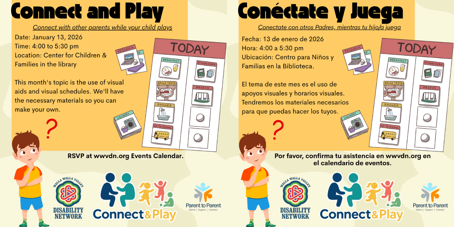 Connect & Play is for Parents/Caregivers (Connect) and children with disabilities & their siblings under 12 years old (Play).
