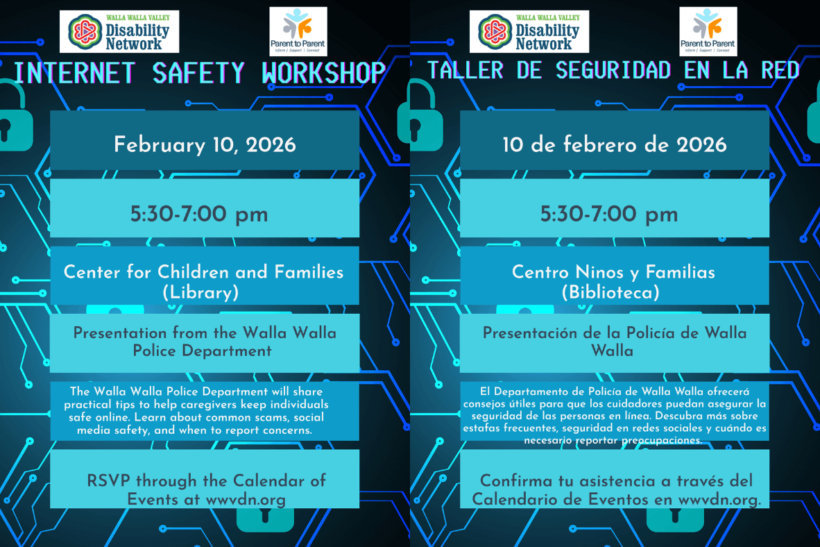 The Walla Walla Police Department will share practical tips to help caregivers keep individuals safe online. Learn about common scams, social media safety, and when to report concerns.